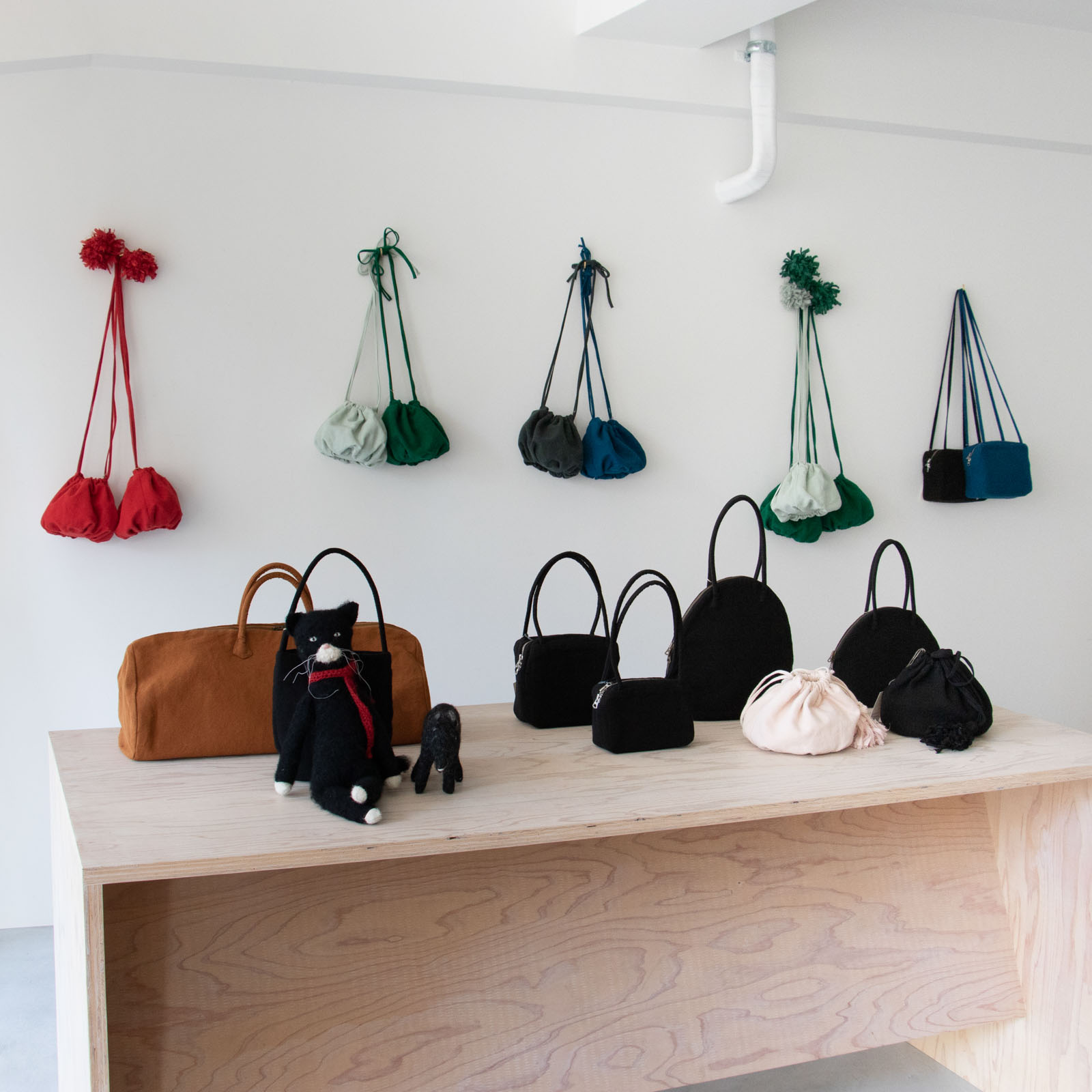 今回は全デザイン約30型ほぼ全てのラインナップから、形と生地の色まで選んでいただけるオーダー会を行います。冬の装いにも寄り添う定番のバッグに加え、1点もののぬいぐるみ、お弁当などをいれて保冷できる人気の巾着も(秋冬は”保温巾着”としても)特別に数量限定でご用意いただきます。
