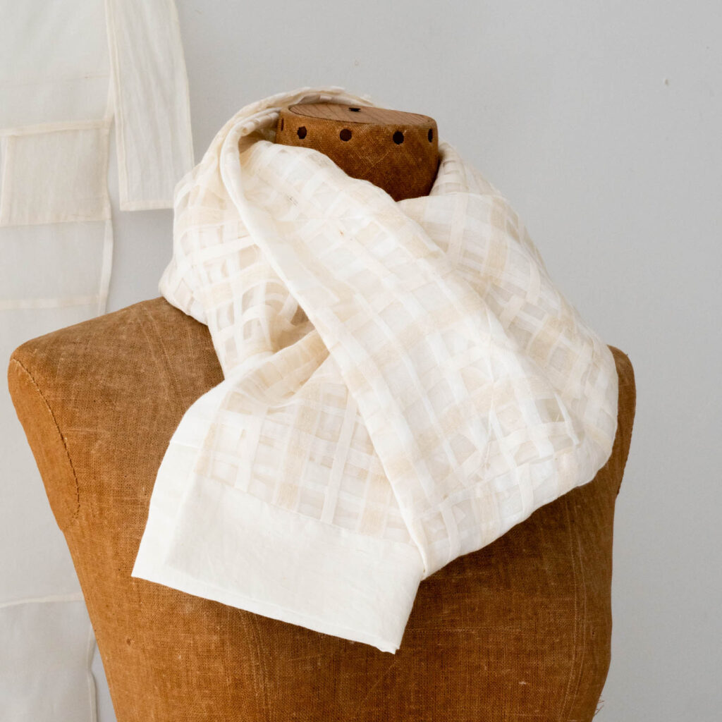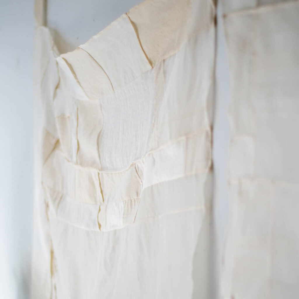 絲室さんは布そのものを使って、静かな模様を描き出します。