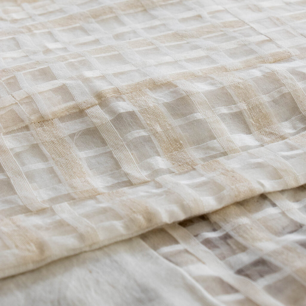 繊維1本1本の織り重なり、光を含んだ半透明の布、