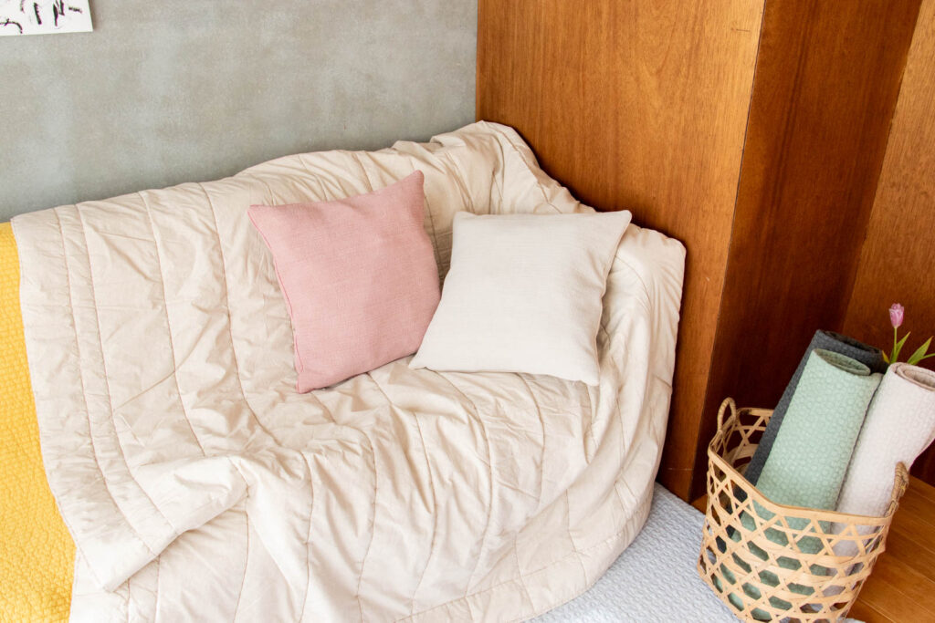 ブランド名の「8182」は、日本と韓国の国番号に由来し、両国をつなぐ想いが込められています。オーガニックコットンを使用したイブル(キルティングマット)をはじめ、クッションやポーチ、スツールなど、日々の暮らしにそっと寄り添うテキスタイルプロダクトを提案しています。