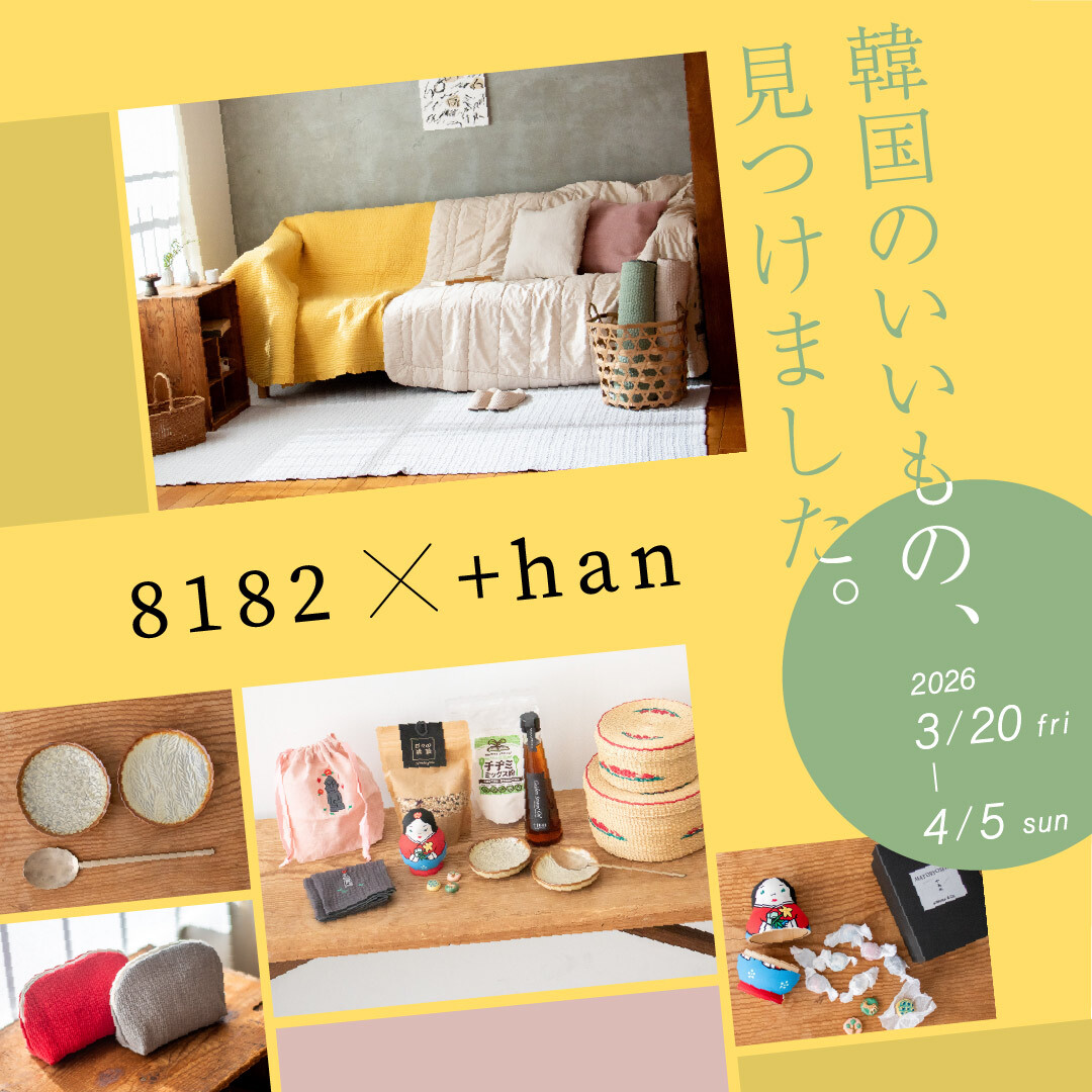 ギャラリー グレープフルーツジュースでは、「韓国のいいもの、見つけました。」と題し、「8182」と「+han」の2ブランドによる展示を開催いたします。
